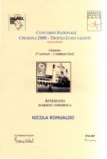 Concorso Nazionale "Trofeo Luigi Valenti " 3° edizione II° classificato nella Sezione Sculturadal 27 Gennaio al 2 Febbraio 2002 Cremona